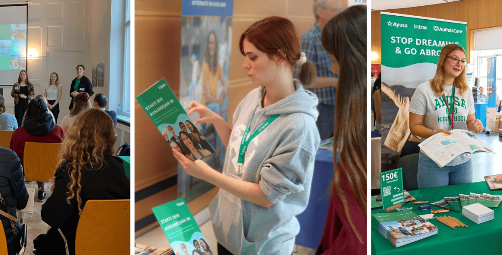 In unseren Infoveranstaltungen gehen wir unsere Schüleraustausch Programme Step by Step durch, damit du einen Rundum-Blick zu deinem Wunschprogramm bekommst. Am Tag der offenen Tür laden wir dich und deine Familie/Freund:innen zu einem Nachmittag in unser Büro in Berlin ein, beraten dich persönlich und du kannst unsere Returnees kennenlernen und dich austauschen. Auf Messen sind wir in ganz Deutschland vertreten und sind die perfekte Anlaufstelle, um einen ersten Kontakt zu knüpfen.